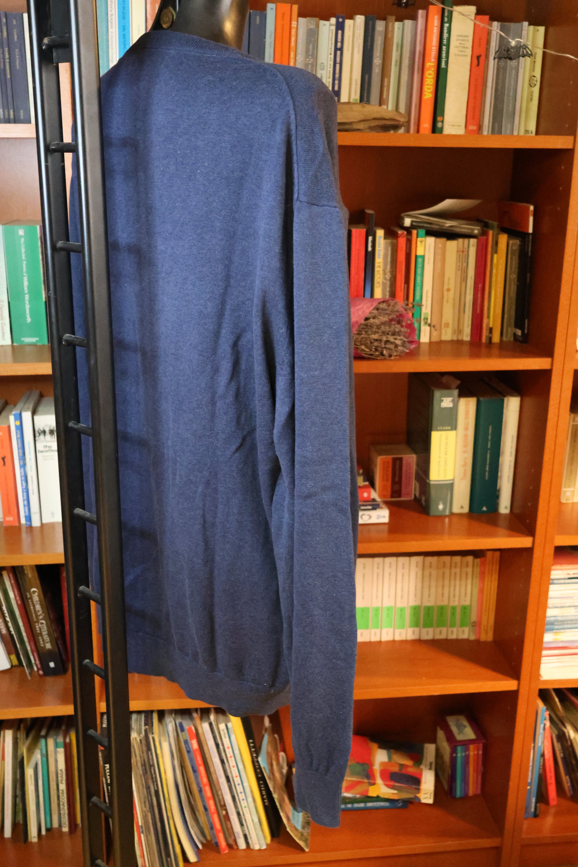 This stylish secondhand bluette sweater features a gender-neutral, oversized design, perfect for layering. Its versatile fit works effortlessly with both trousers and skirts. Available in size XXL.