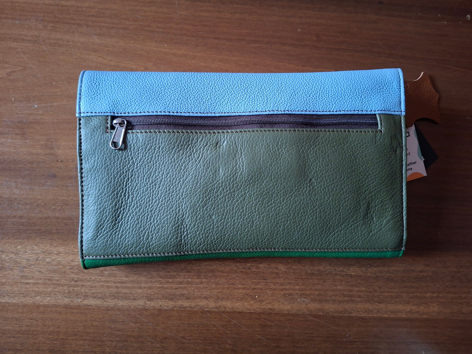 Realizzato con le rimanenze di pelle riciclata da artigiani indiani.