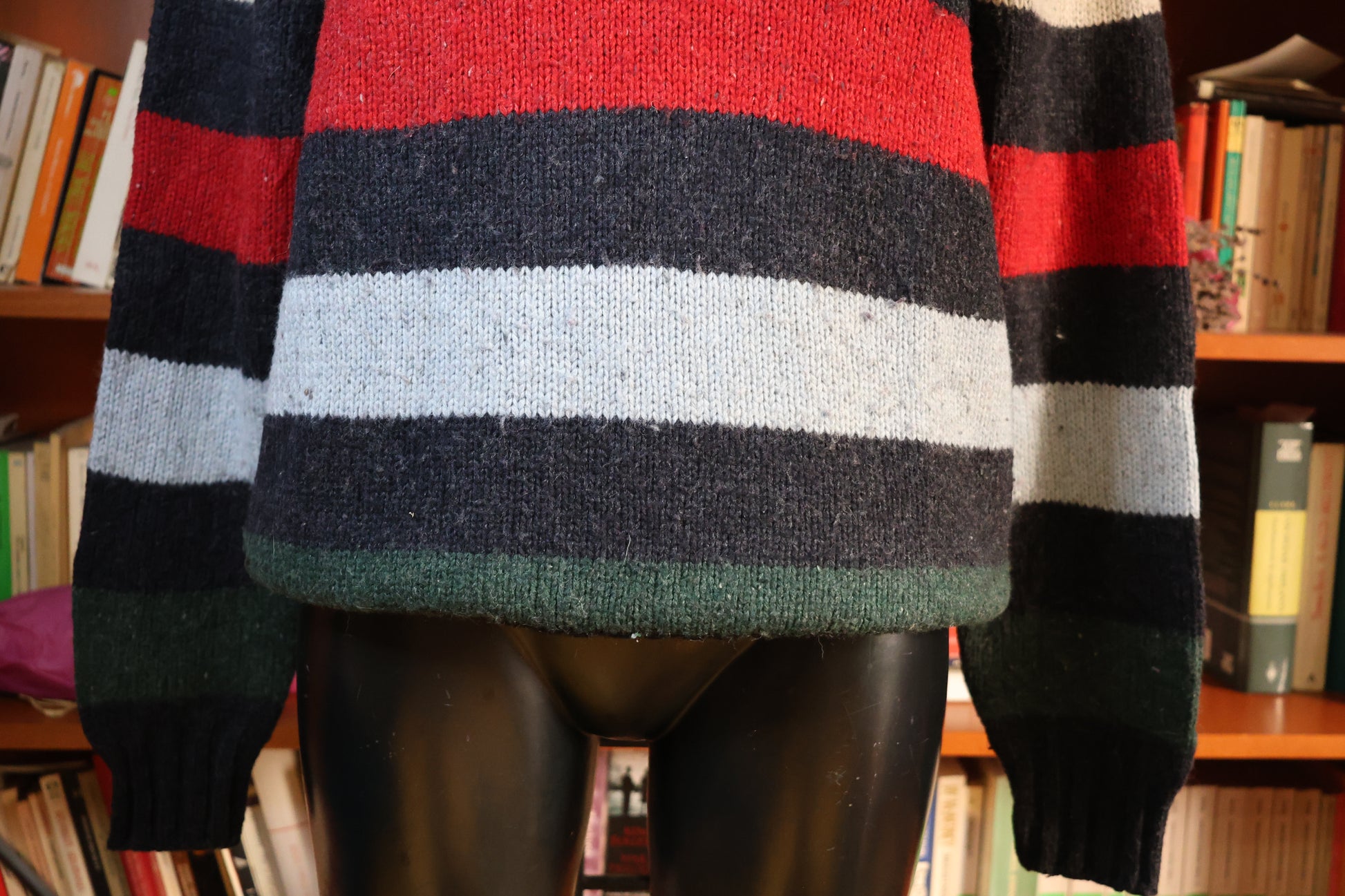 This pre-loved striped sweater offers a relaxed, boyfriend or big brother style that's ideal for both boys and girls. Available in size M, it's a unique find you won’t want to miss—only one in stock!